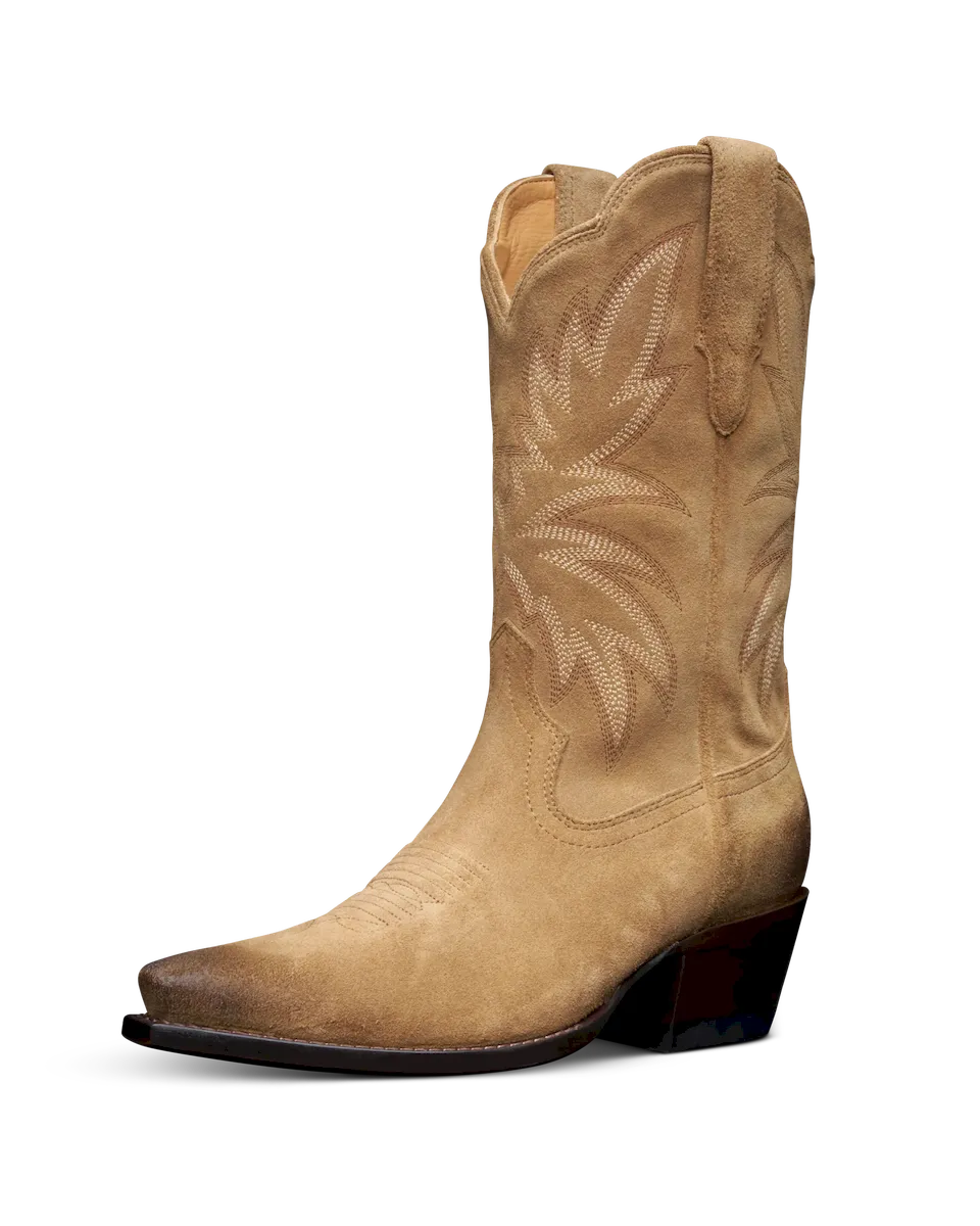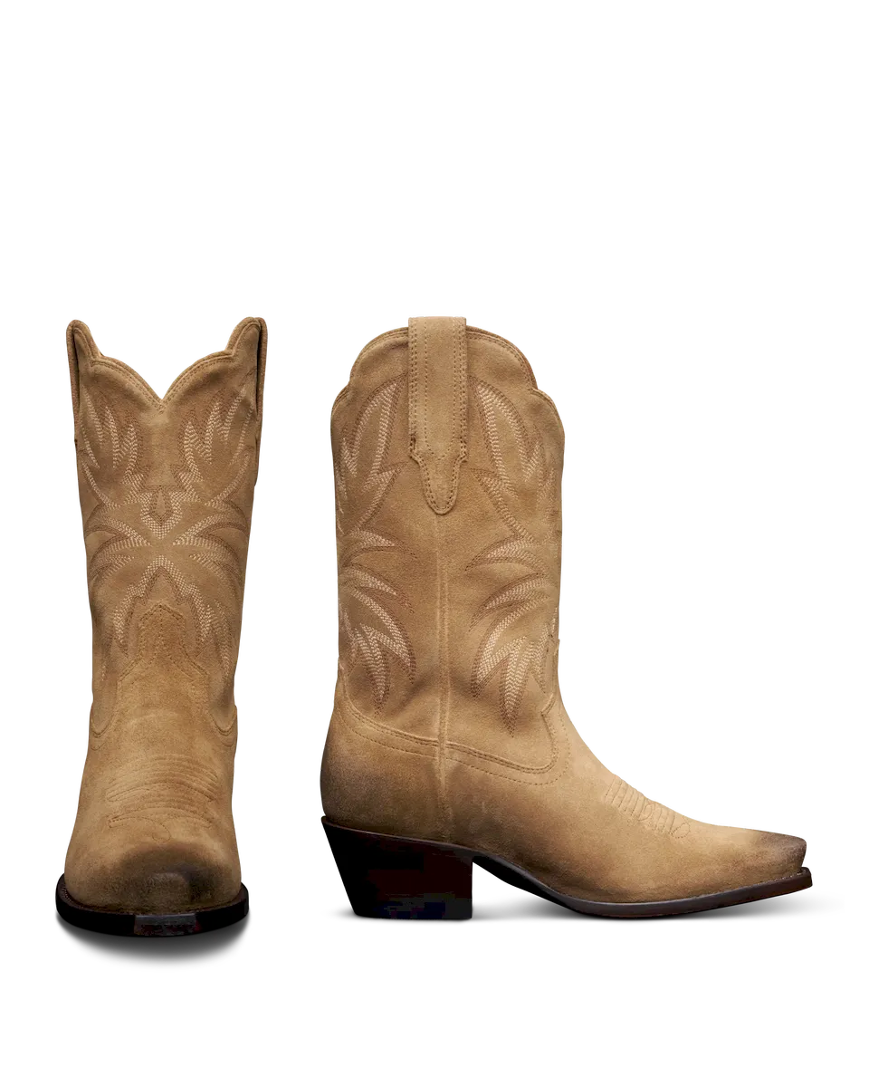 A little bit vintage, a little bit wild, The Sadie is your dance-all-night, turn-heads kind of boot. With a classic snip toe and an 11” shaft adorned in retro-inspired seven-row stitching, she’s just as at home under neon lights as she is kicking up dust. The scalloped topline adds a feminine touch, gracefully elongating the leg for a flattering silhouette. Soft cowhide lining molds to your foot like a second skin, making The Sadie the perfect partner for every twirl, shuffle, and stride.