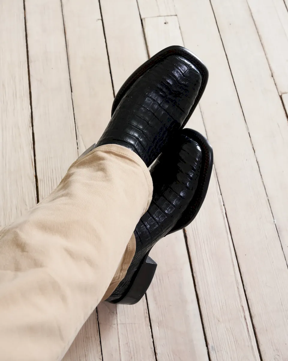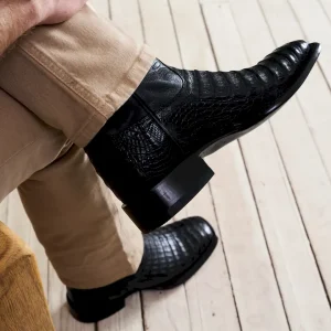 Part of the alligator family, caiman showcases statement-making scales that have a distinct depth of texture. Smaller than its larger brethren, there’s nuance and appeal aplenty in each unique hide. Exotic boots are an investment, and caiman is a wise one, with the durability to become a future heirloom with proper care.