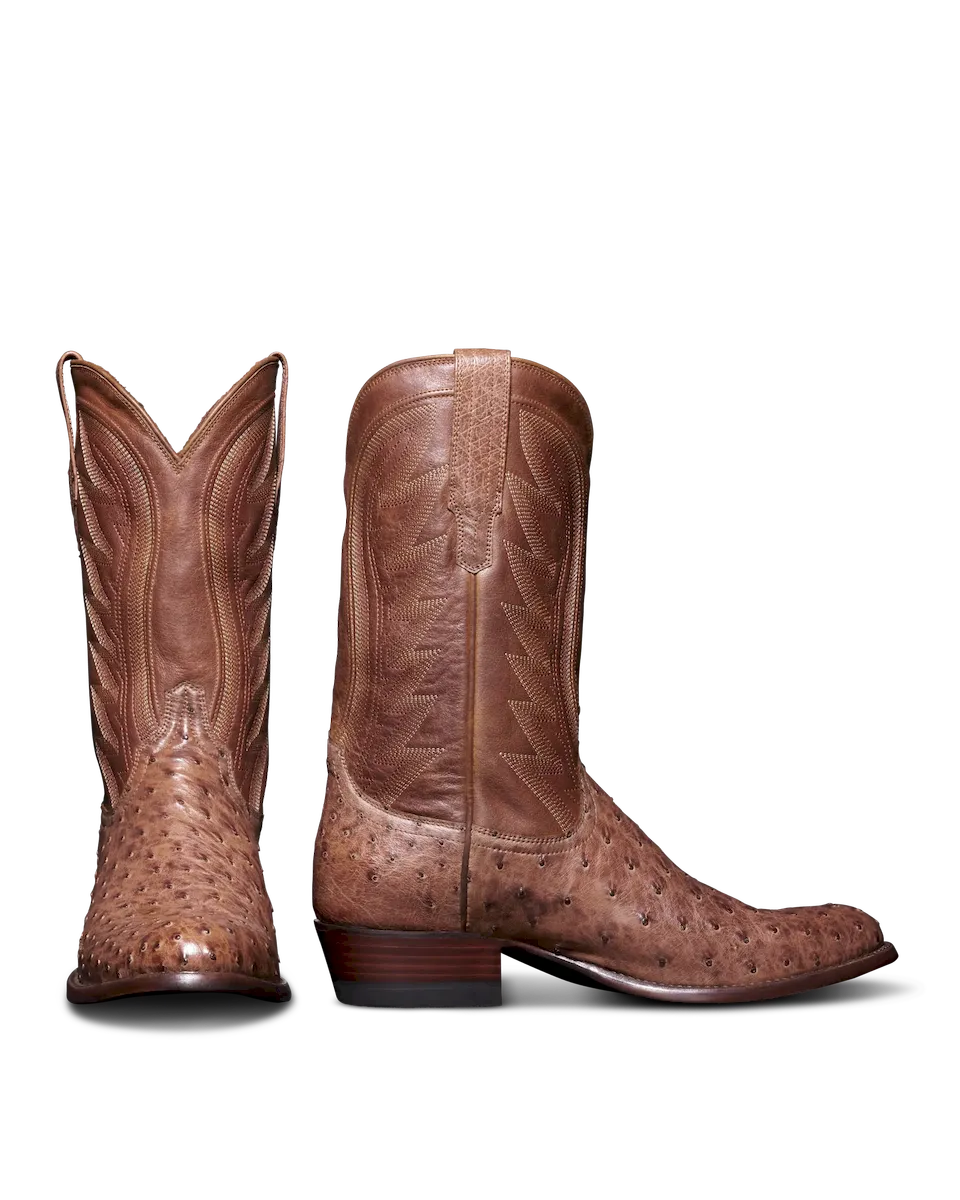 An icon for the modern era, The Wyatt showcases the rich natural texture of exotic full-quill ostrich leather in our classic cowboy profile. A sweeping, nine-row stitch pattern adorns its leather shaft, a tri-layer insole anchored by a steel shank provides optimal support, and a hung leather lining brings breathability to its glove-like fit. All handcrafted with a ¾ Goodyear welt, this fine dress boot combines the slipper-like comfort of ostrich leather with the superior quality you expect from Tecovas. Whether you’re out on the town or in the office, The Wyatt promises pure Western style for every occasion.