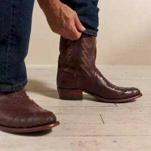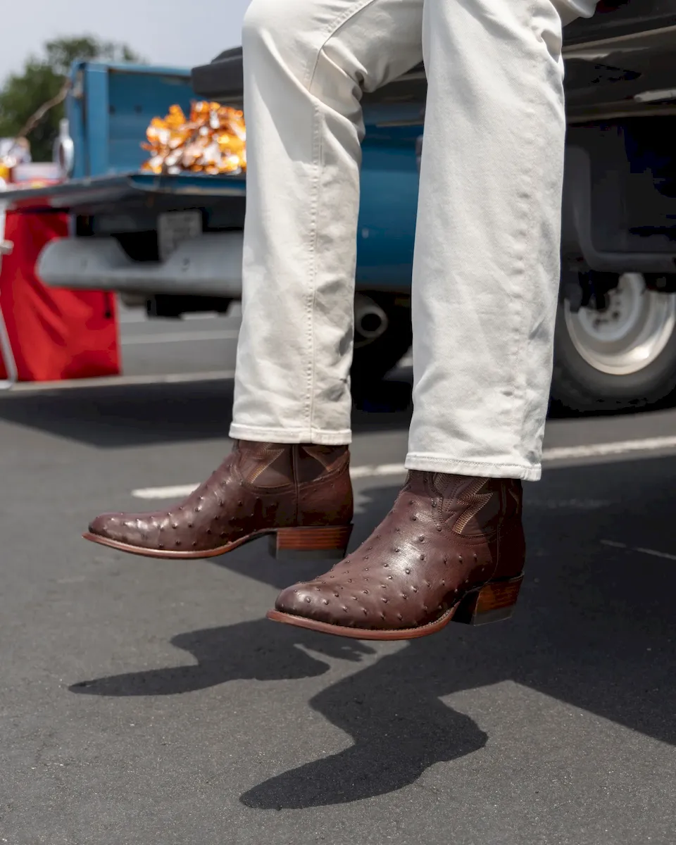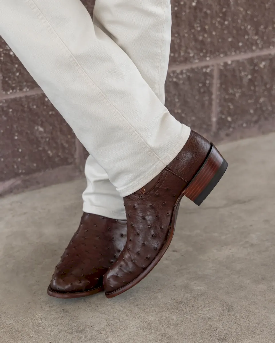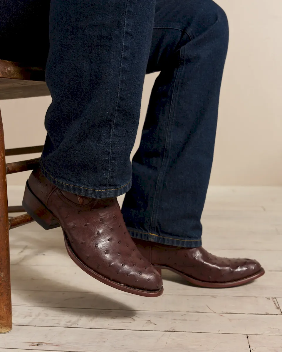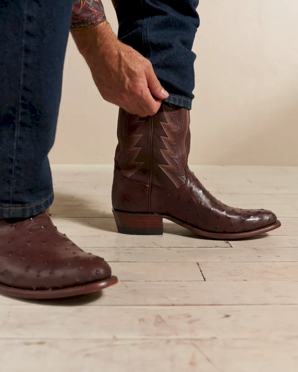 An icon for the modern era, The Wyatt showcases the rich natural texture of exotic full-quill ostrich leather in our classic cowboy profile. A sweeping, nine-row stitch pattern adorns its leather shaft, a tri-layer insole anchored by a steel shank provides optimal support, and a hung leather lining brings breathability to its glove-like fit. All handcrafted with a ¾ Goodyear welt, this fine dress boot combines the slipper-like comfort of ostrich leather with the superior quality you expect from Tecovas. Whether you’re out on the town or in the office, The Wyatt promises pure Western style for every occasion.