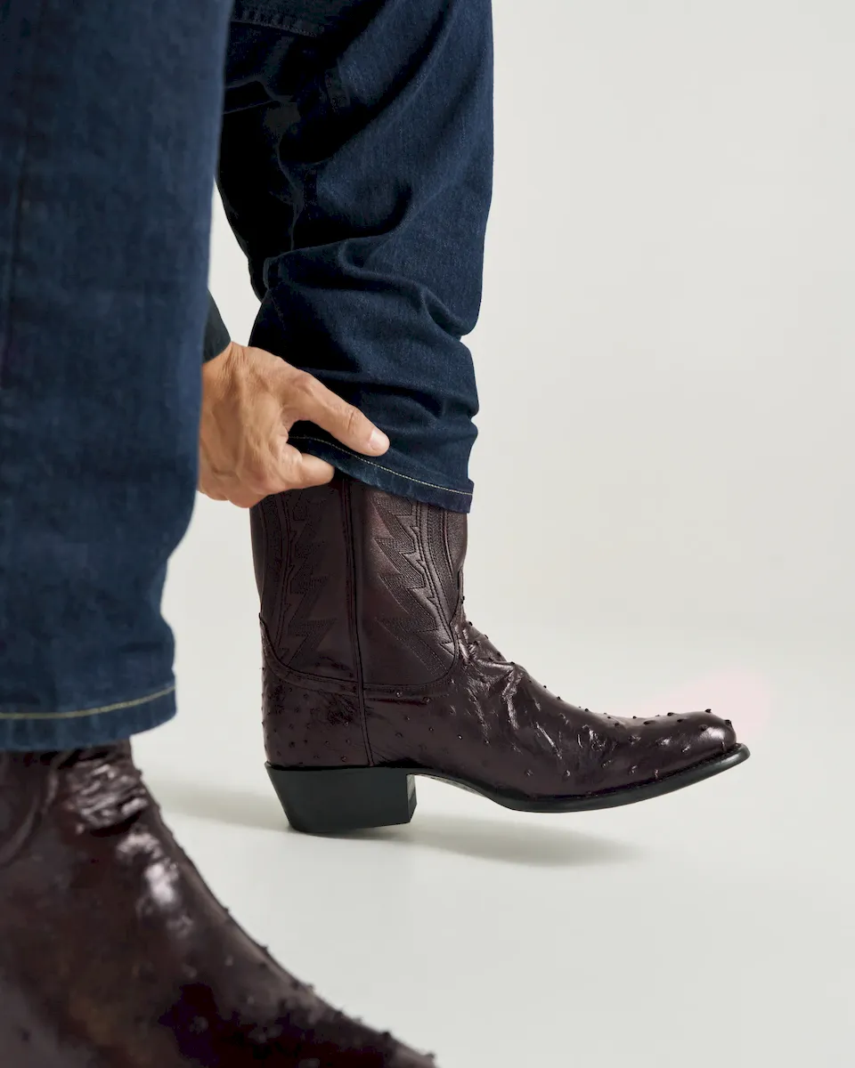 The Wyatt gets a bold update in Black Cherry, featuring full-quill ostrich leather and a richly colored cowhide shaft crafted from brushoff leather that reveals more cherry tones as it wears in. It’s a standout shade that dresses up or down with ease, pairing just as well with denim as it does with tailored looks. Finished with a signature nine-row stitch pattern and a glove-like fit, it’s a bold classic made for any occasion.