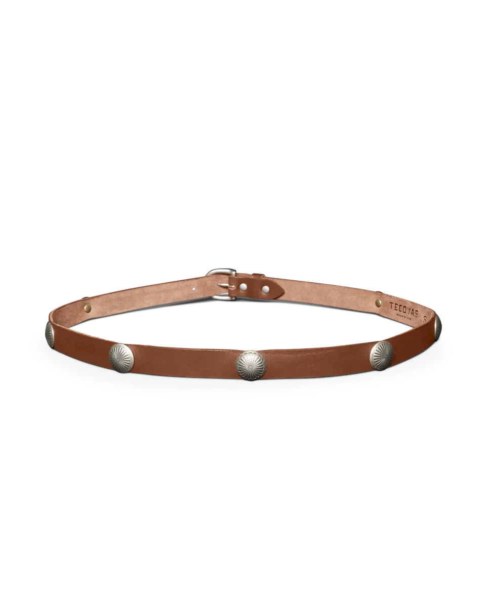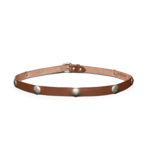 The Women’s Concho Belt is designed for versatile styling, whether worn at the hip or waist. Crafted from premium Italian Vachetta cowhide, known for its smooth grain texture, rich color depth, and luxuriously soft feel. This exceptional leather comes from a multi-generational, family-run vegetable tannery in Tuscany, where traditional techniques create a supple yet durable finish. Its ¾” wide strap creates a sleek, layered look. The belt is adorned with seven artisan-made conchos, crafted in the USA, adding an authentic, heritage-inspired touch. Finished with a D-shaped buckle in a matte nickel finish, this belt is a fashion-first piece that effortlessly elevates dresses, skirts, and denim alike.