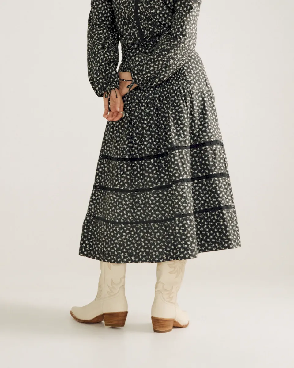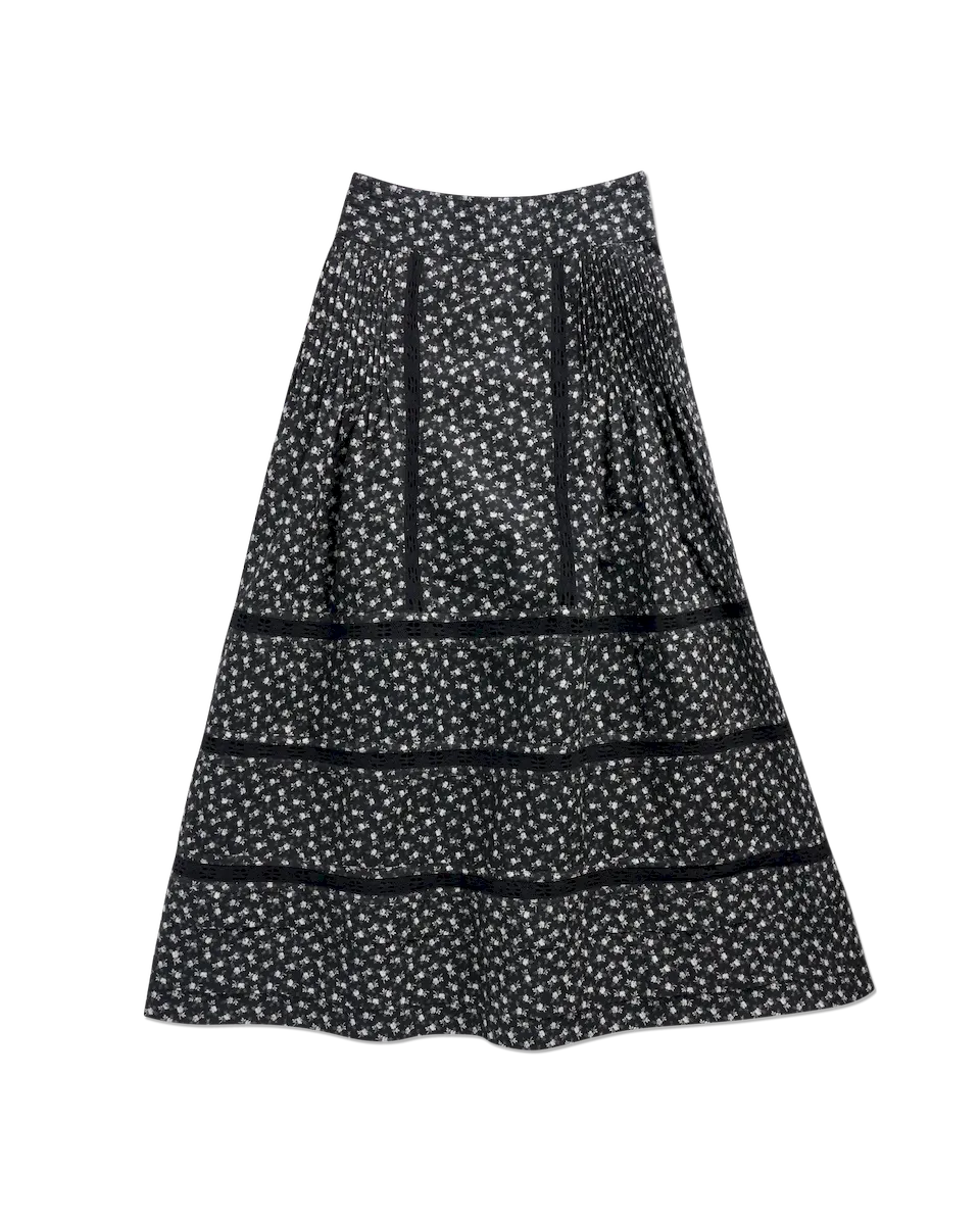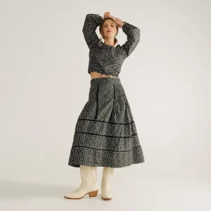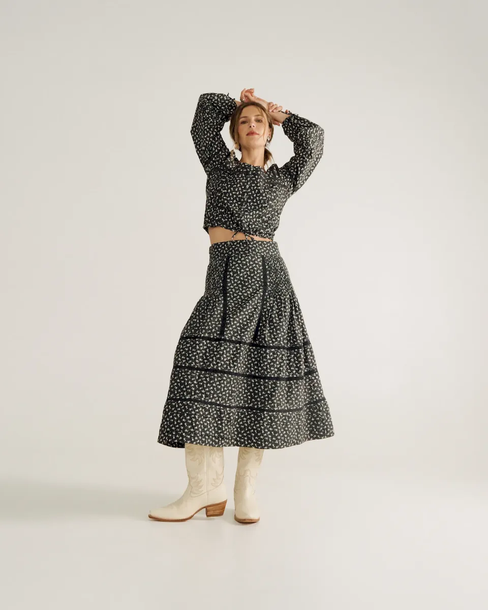 A skirt built for style and ease. Crafted from custom-printed cotton poplin with lace and pintuck details that add just the right amount of edge. Functional zipper for a clean fit. Wear it solo or pair it with the matching top for a set that means business — ready for whatever the day brings.