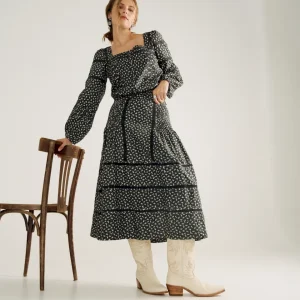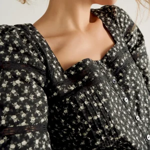 Made from crisp, breathable 100% cotton poplin, this top features delicate pintucks, lace accents, and slightly puffed sleeves for a soft, feminine shape. With adjustable self-ties at the waist and sleeves, a square neckline, and a bra-friendly fit, it’s as easy to wear as it is special. Style it solo or pair it with the matching skirt for a standout set look that works for brunch, date nights, and everything in between.