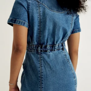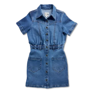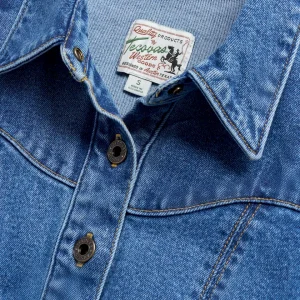 A first-of-its-kind staple, this short-sleeve mini denim dress blends classic Western style with a modern, flattering fit. Crafted from premium denim with a touch of stretch, it offers just the right balance of structure and comfort. Thoughtfully designed with princess seams for a contoured shape, a relaxed top, and a fitted bottom, it’s an easy go-to for any occasion. Signature details like the Western yoke, and front patch pockets with toe bug stitching add timeless charm. Made to show off your favorite pair of boots.