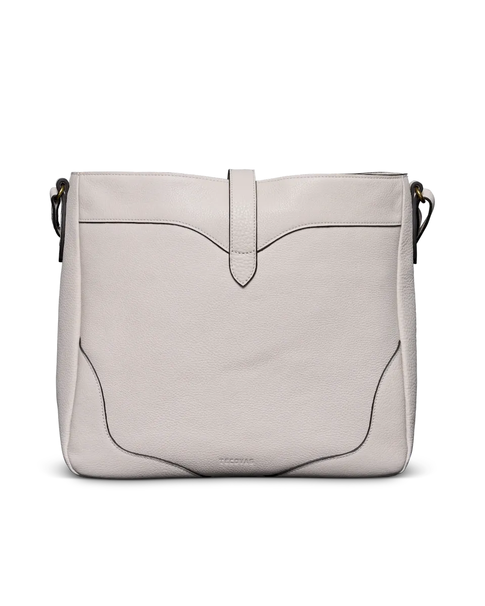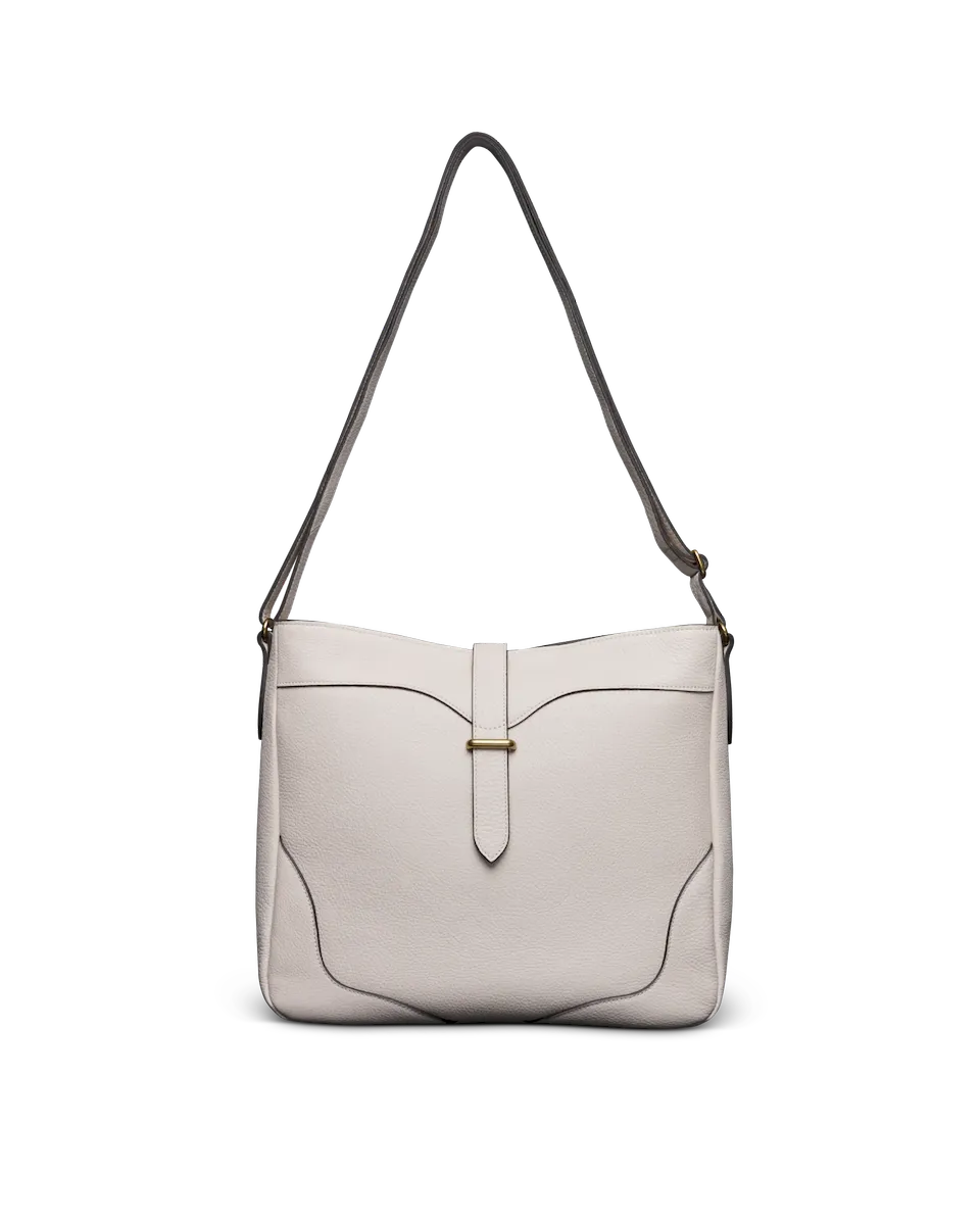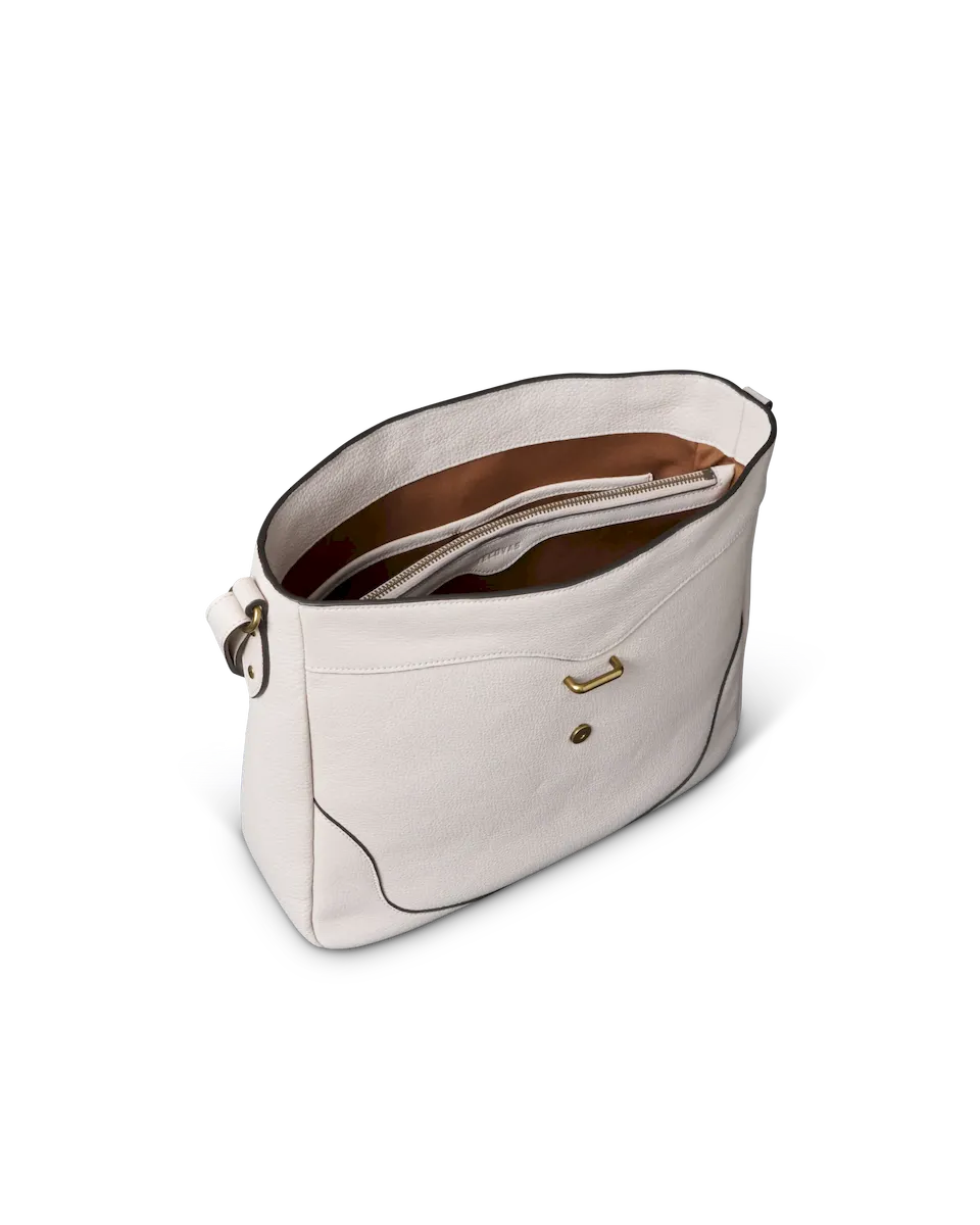 Great as a purse or an everyday bag, the Sierra Hobo Bag can be comfortably carried on the shoulder or crossbody, all thanks to a convertible strap. Lightly glazed smooth cowhide leather with just a hint of grain provides a clean, timeless look, and solid brass hardware ensures quality while adding tasteful detail. Its top flap features a custom magnetic snap closure, and its twill-lined interior is made for function with two slip pockets and an interior divider to separate your wallet from the rest of your essentials.