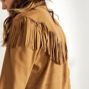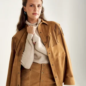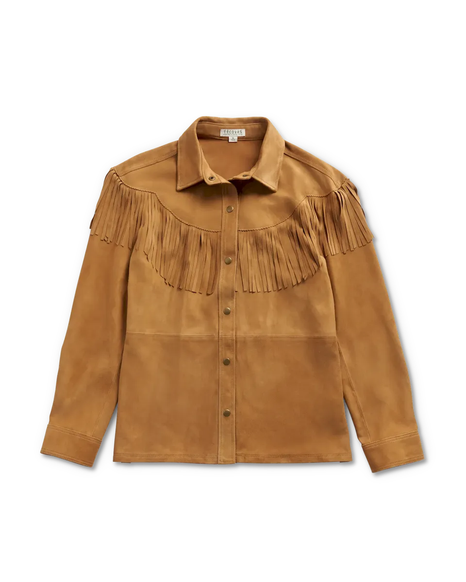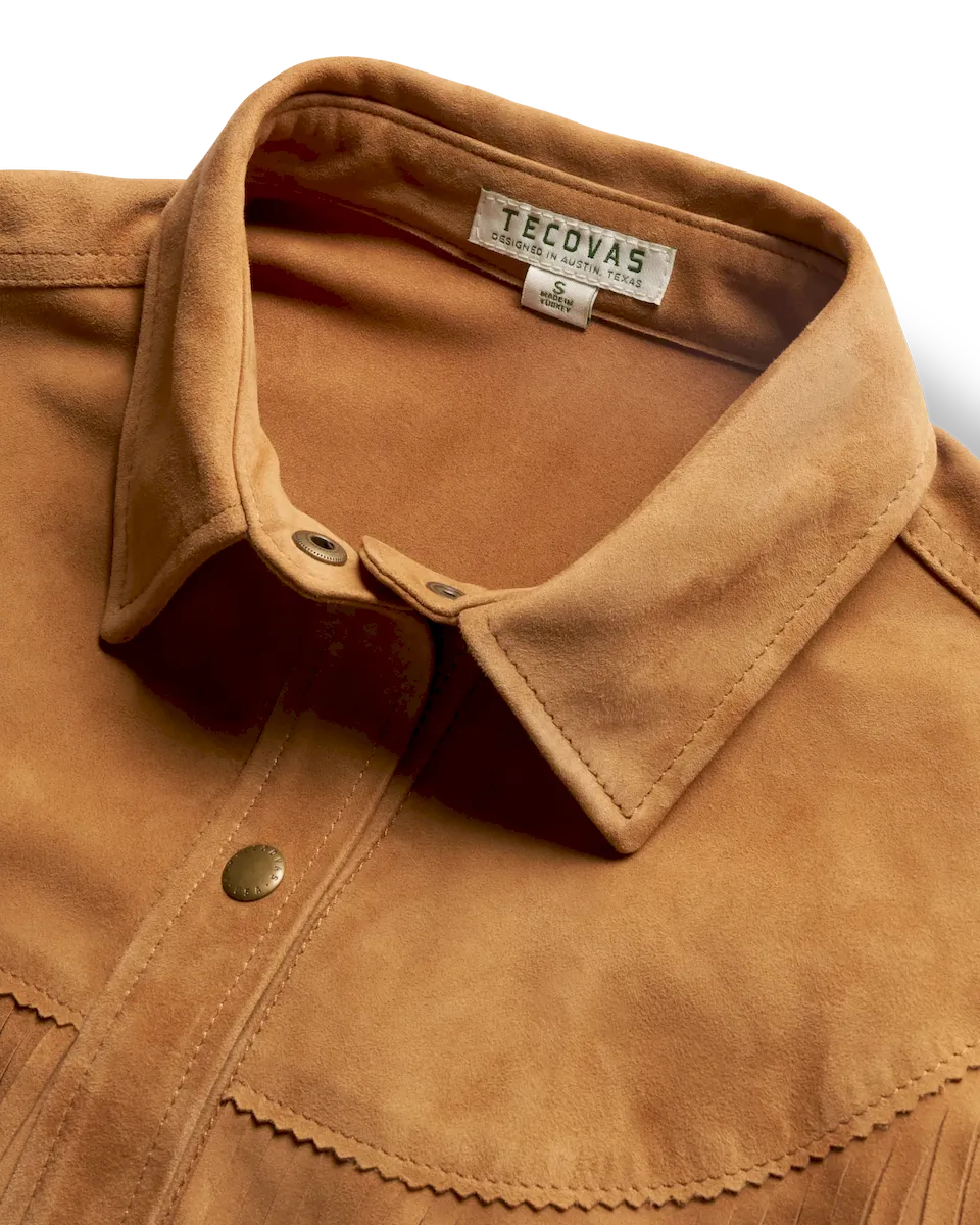 Our Women’s Suede Shacket is luxurious outerwear that feels as good as it looks. Made from soft goat suede with vintage-inspired fringe accents framing both the front and back yokes — pair it with the Women’s Suede Mini Skirt for a refined top-to-bottom ‘fit that’s fit for Western royalty.